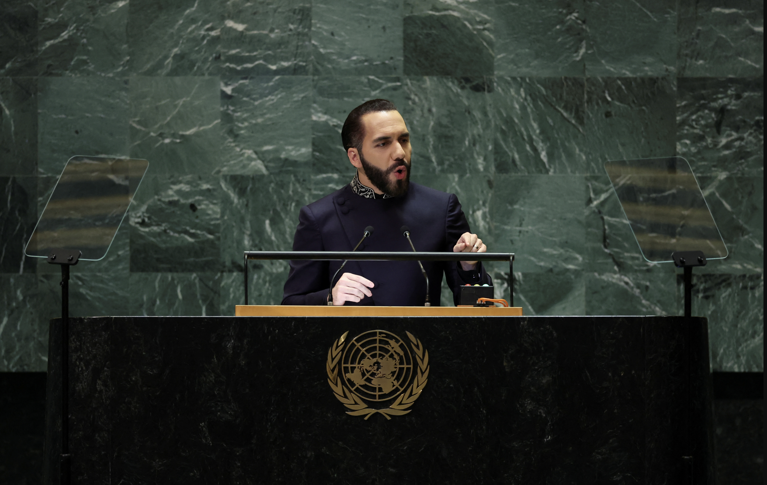 Bukele, a former advertising executive who came to power in 2018, presents himself as a modern, tech-savvy outsider breaking from El Salvador's traditional political establishment. He made El Salvador the first country to adopt Bitcoin as legal tender, and presents himself as a "philosopher king" rather than a traditional politician. Bukele maintains an active social media presence, becoming one of the most-followed world leaders on TikTok, and cultivates a youthful image—often appearing in jeans, leather jackets, and backward baseball caps rather than traditional suits.