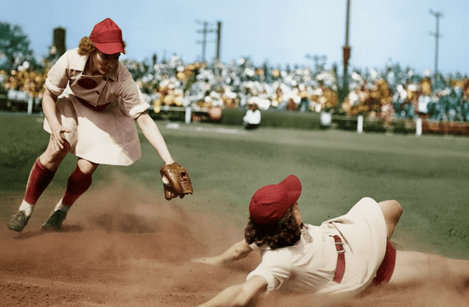 The crowds loved it. And very quickly it became clear that the women were just as talented as the men. So talented, in fact, that the league soon switched to using baseballs instead of softballs and increased the size of the baseball diamond.
