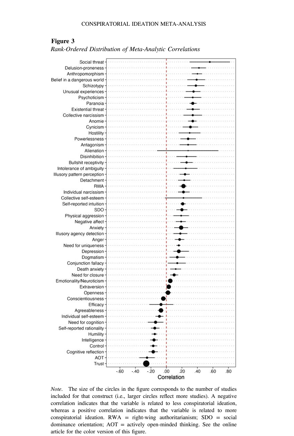 Studies show that people who believe in conspiracy theories are more likely to believe that the world is inherently dangerous and that they have little control over their surroundings and circumstances. They are also more prone to cynicism, anxiety, poor self-esteem, narcissism, personality disorders, and depression.