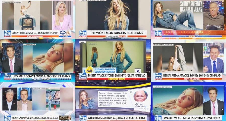 According to The New York Times, “Right-wing commentators suggested there was widespread criticism of Ms. Sweeney over her new ad campaign. There wasn’t, at least at first.” The paper’s data analysis found that right-leaning media were on the offensive, picking up the story first and with more frequent coverage. Following this, “the one-sided discourse… appears to have provoked an actual debate: Left-leaning criticism of the campaign rose considerably after the topic gained traction on the right.” Voices on the left swept in to clarify their position on the ad, saying that the ad’s “focus on Sweeney's ‘genes’ is uncomfortably close to a positive portrayal of eugenics.”