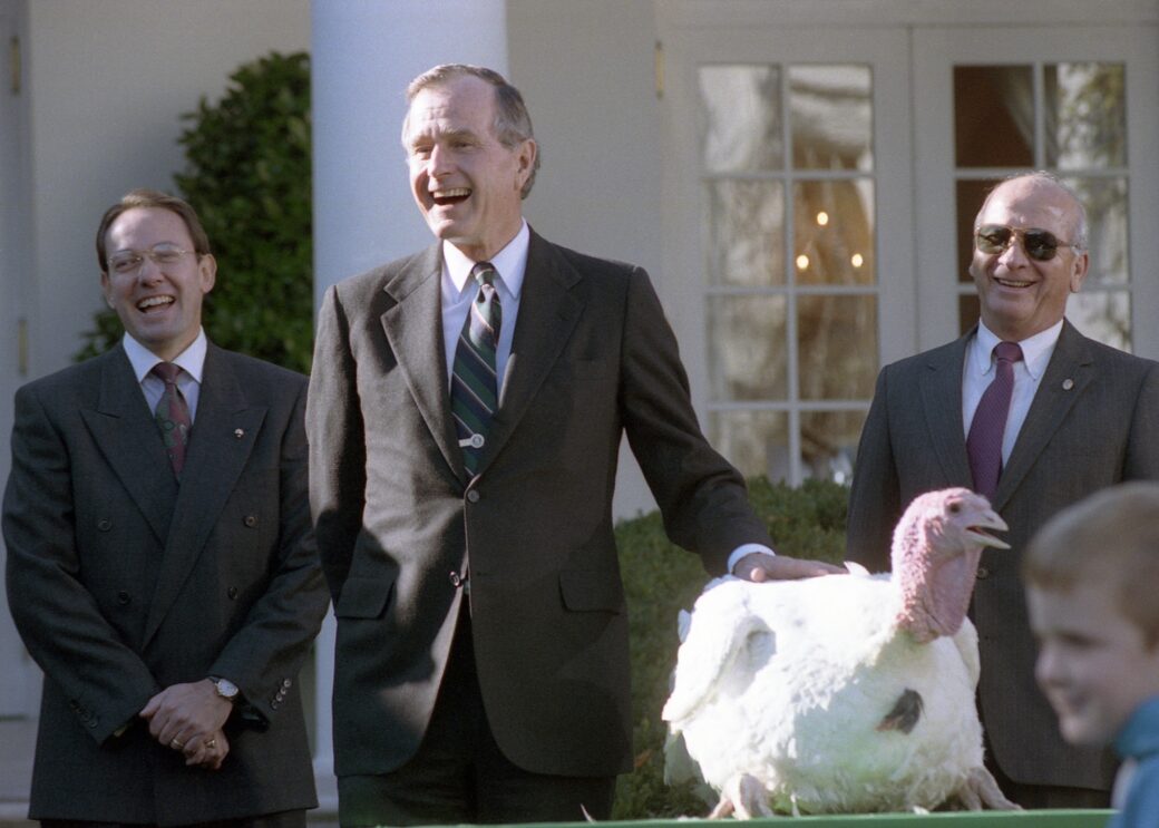 To celebrate the National Turkey Federation's new partnership, The White House held a turkey receiving ceremony in the Rose Garden, a tradition that has continued ever since. The photos that circulate every year of the president with a turkey? Those are far more likely to be from this turkey receiving ceremony than from the pardoning tradition, which didn't become an annual tradition until 1989, after President George H.W. Bush remarked, “Reprieve. Keep him going. Or pardon. It's all the same for the turkey, as long as doesn't end up on the president's holiday table.” Before that, President John F. Kennedy pardoned a turkey meant for his table in 1963, and some of his successors did the same, but only occasionally.