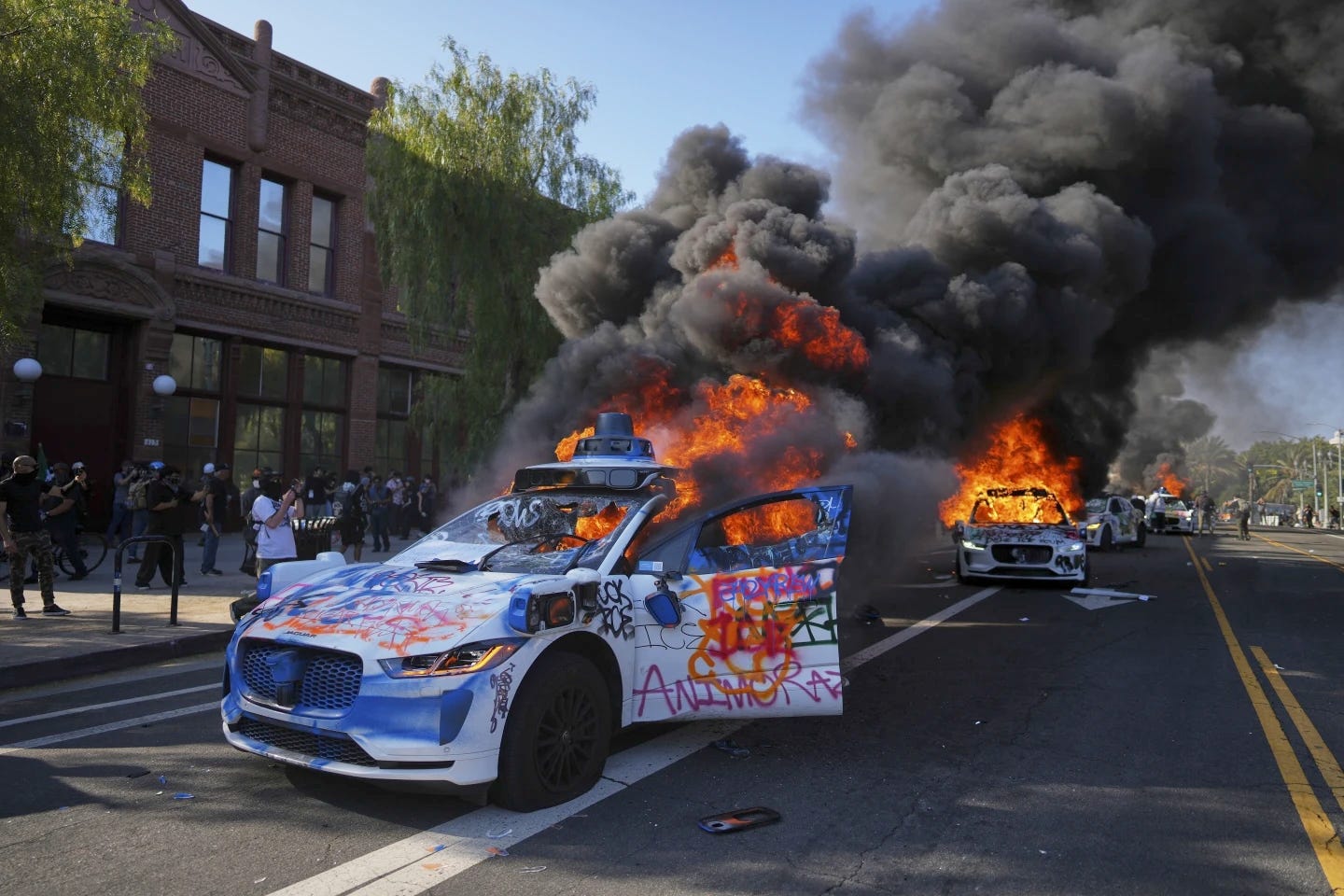 Recent events in Los Angeles illustrate how this dynamic plays out in practice. During protests against immigration enforcement, black-clad demonstrators set fire to autonomous Waymo vehicles, with videos of the destruction quickly spreading across social media. Rather than condemning the violence, far-left online groups actively promoted it. "MORE. MORE AND MORE AND MORE," posted a group called Unity of Fields on X, sharing footage of the burning cars and urging followers to "give 'em hell."