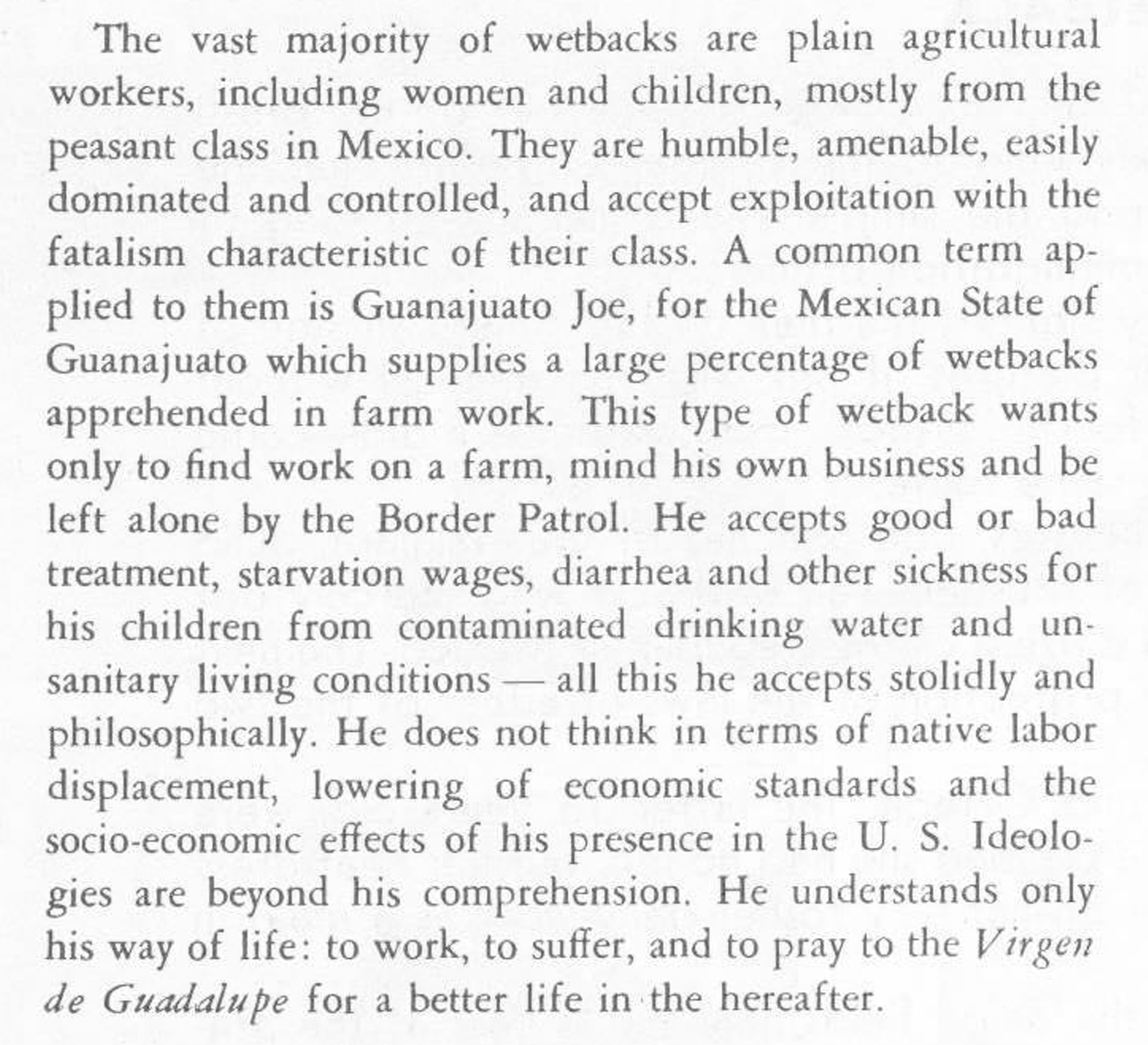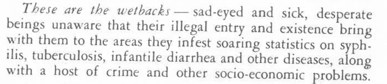 And so, many Americans believed, wetbacks might as well go ahead and “suffer” back in Mexico.