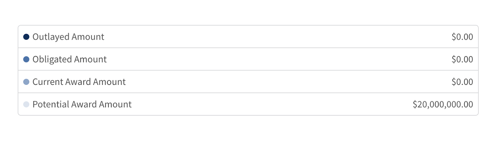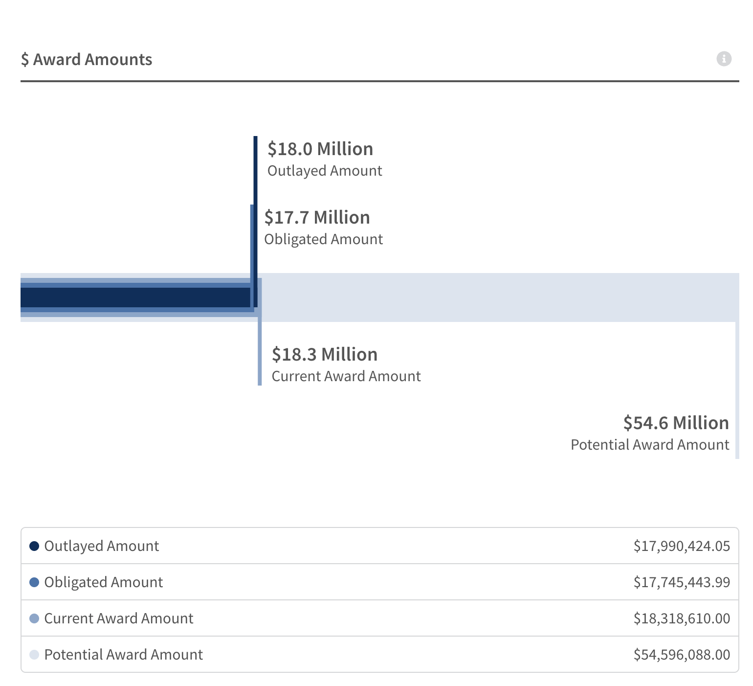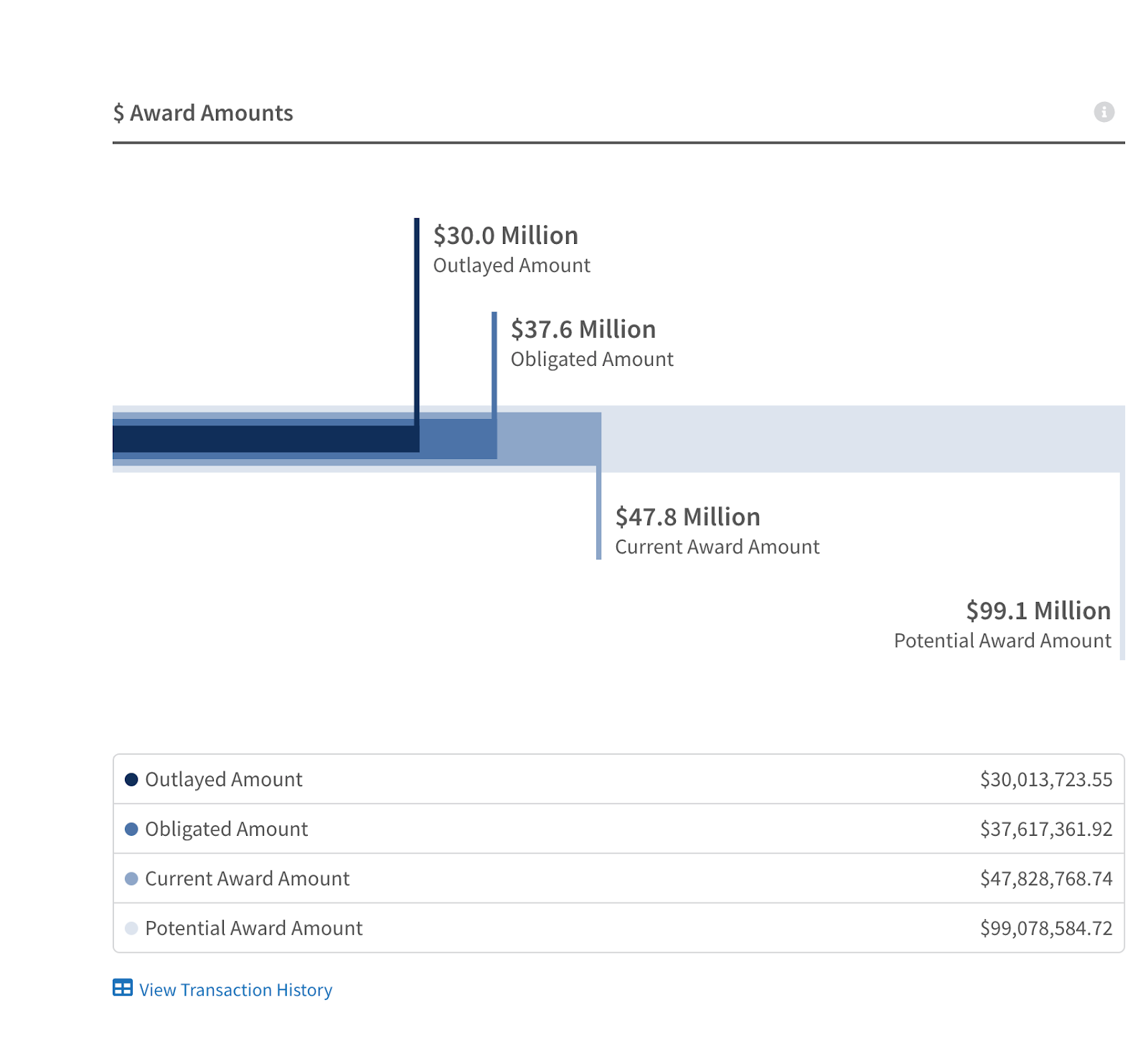 This is a $99 million potenial contract, but over $30 million has already been paid – that’s the “outlayed amount.” Then, $37.6 million is shown as the obligated amount, which is the minimum amount the US government is legally obligated to pay.