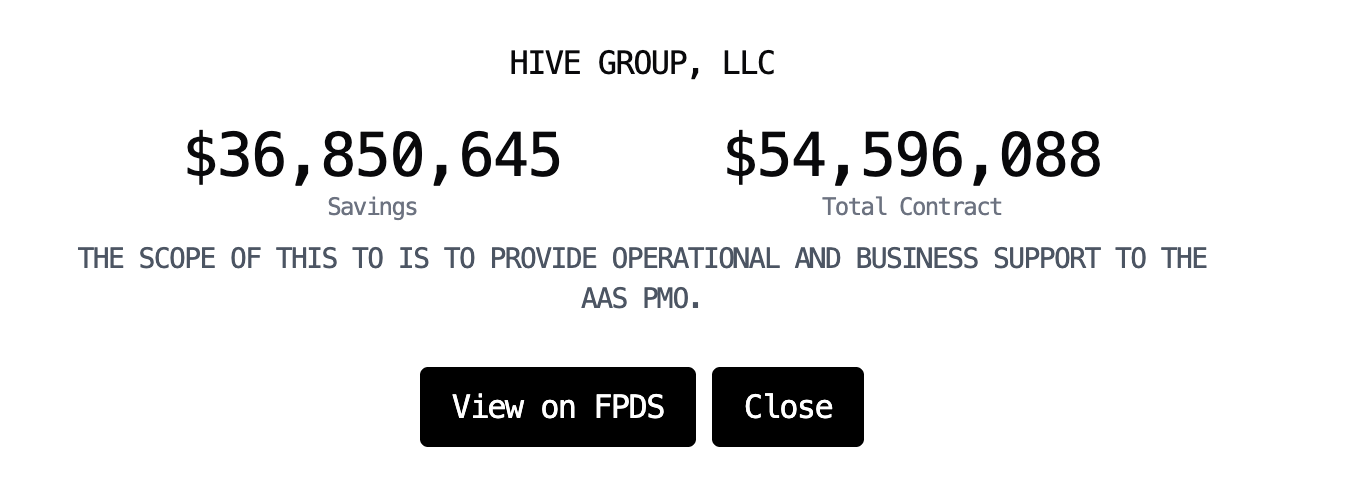 Let’s look at this one, which shows over $62 million in savings on the DOGE website.