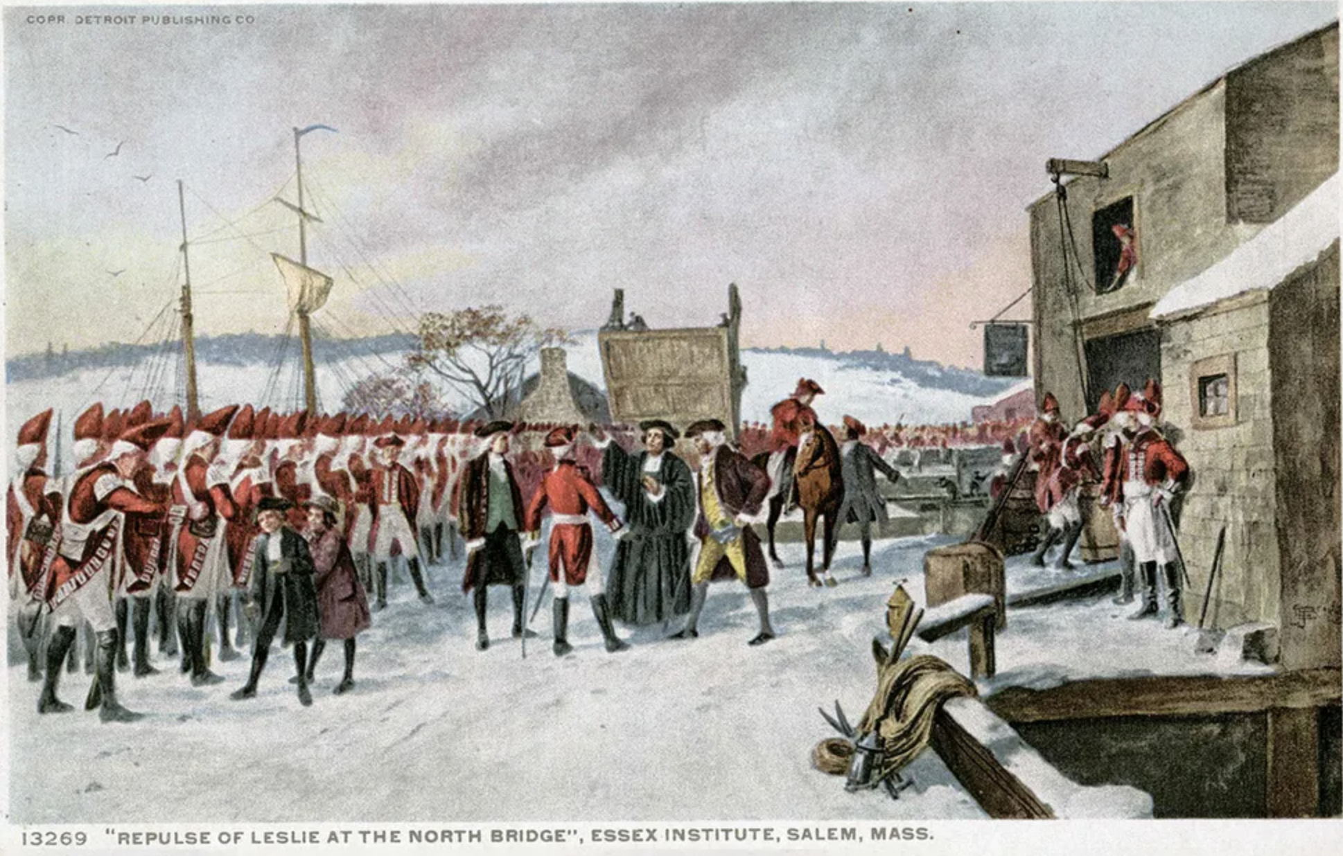 Seven and a half weeks before the “shot heard ’round the world” at the Battles of Lexington and Concord marked the conventional start of the American Revolution on April 19, 1775, a long-overlooked encounter between the British Army and the townspeople of Salem, Massachusetts, almost sparked outright war. At a river and over a bridge, American colonists’ desire for independence reached a fever pitch as they stood their ground against the distant kingdom of their heritage.