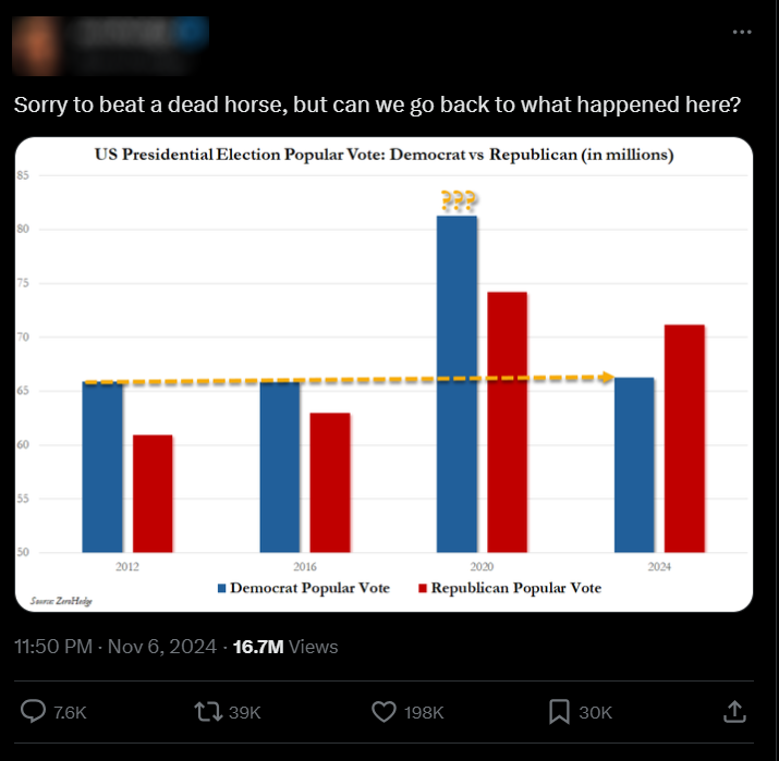 Interestingly, vote totals were used by both the left and the right in different conspiracy theories in 2024.