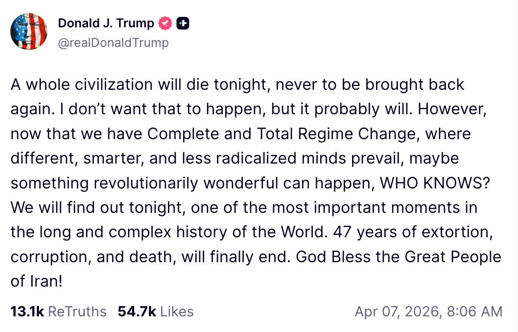 The Pakistani PM’s proposal comes after Trump reiterated his threats against Iran in a Truth Social post early this morning, where he wrote that “a whole civilization will die tonight, never to be brought back again.”
