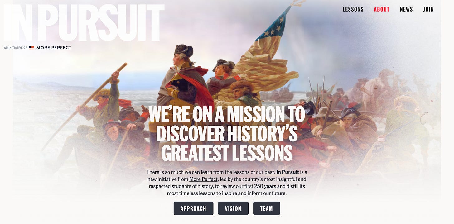 In Pursuit is a new nonpartisan history project from More Perfect built around a simple but timely idea: if we’re going to make sense of where the country is headed, we need to look honestly at where it has been. Across 2026, the project is publishing short, accessible essays that revisit the first 250 years of the American experiment and draw out lessons about leadership, character, citizenship, and democracy.