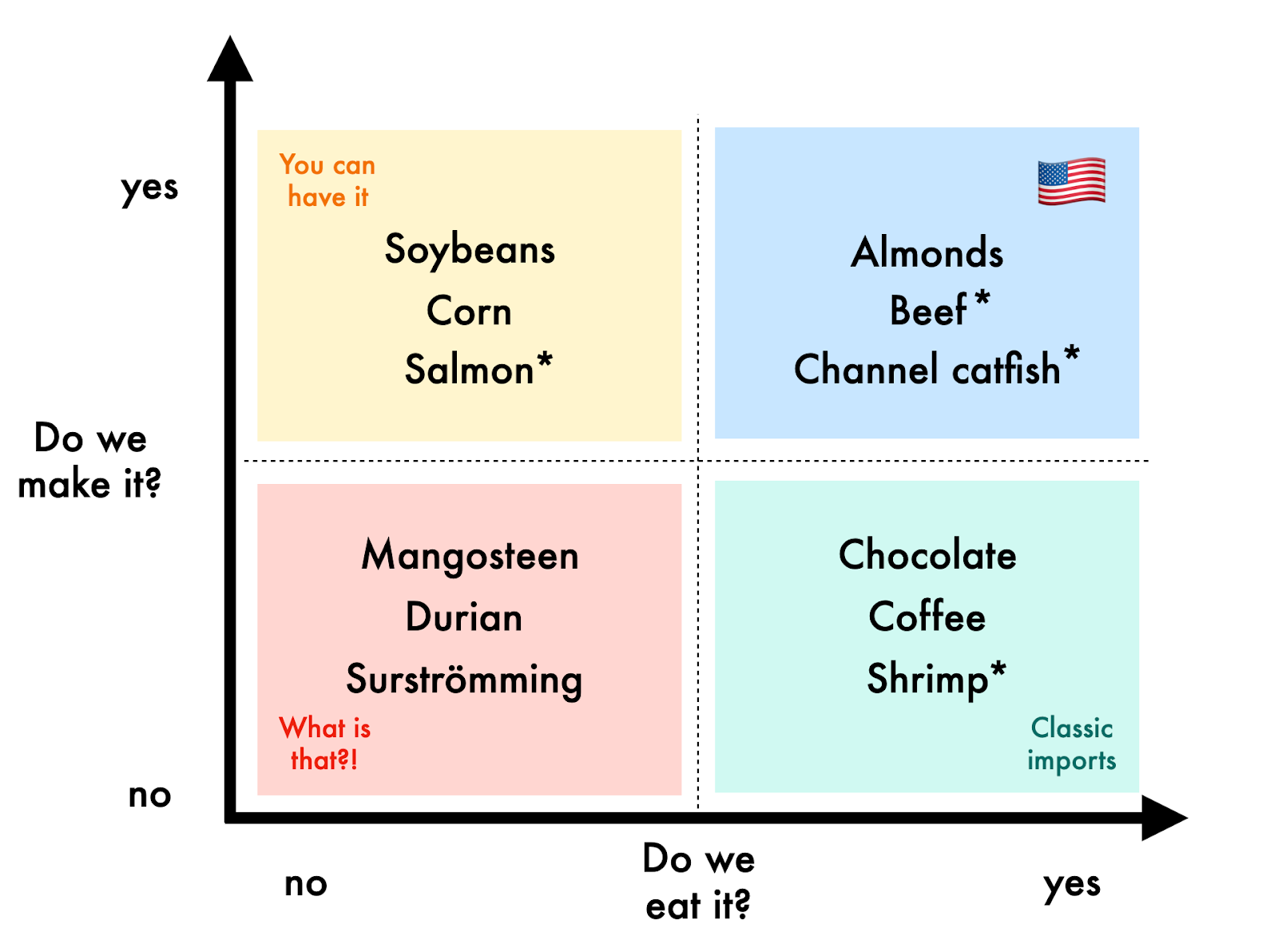 We export between 10% and 20% of our corn, but despite its status as a classic summer barbecue side dish, the non-exported vast majority is also not eaten by us but instead used for animal feed and biofuels.