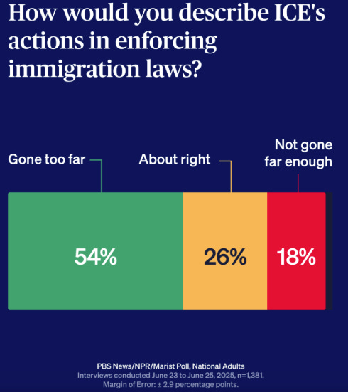 The public agrees. Recent polling shows that while a large majority of Americans want to deport illegal immigrants who have committed crimes, most also think that Trump and recent ICE enforcement efforts have gone too far.