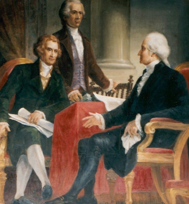 Just back from France, Jefferson was sitting down for breakfast with George Washington to discuss the US Constitution, which had been written while he was away.