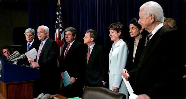 The group included seven Democrats and seven Republicans. Because of the way the Senate was composed at the time, Democratic leaders weren’t able to filibuster any of George W. Bush’s nominees without those seven Democrats — if they joined Republicans in cutting off debate, the 60-vote threshold would be surpassed. And GOP leaders weren’t able to eliminate the filibuster without those seven Republicans — if they joined Democrats in opposing the nuclear option, a potential rules change wouldn’t reach 51 votes.