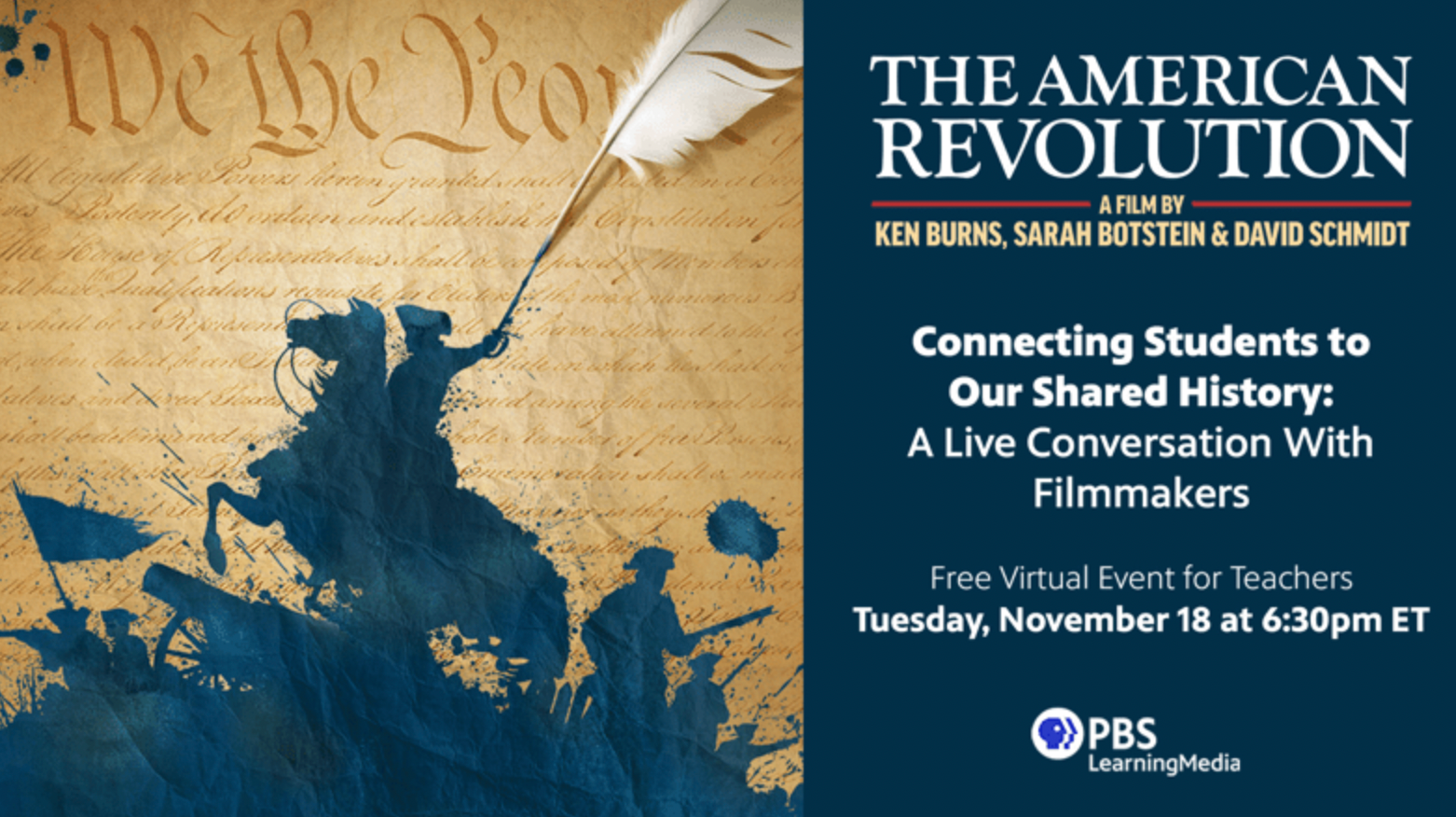 Join PBS LearningMedia on November 18th at 6:30 pm ET for an engaging conversation with Ken Burns, Sarah Botstein, and David Schmidt, the filmmakers of The American Revolution.