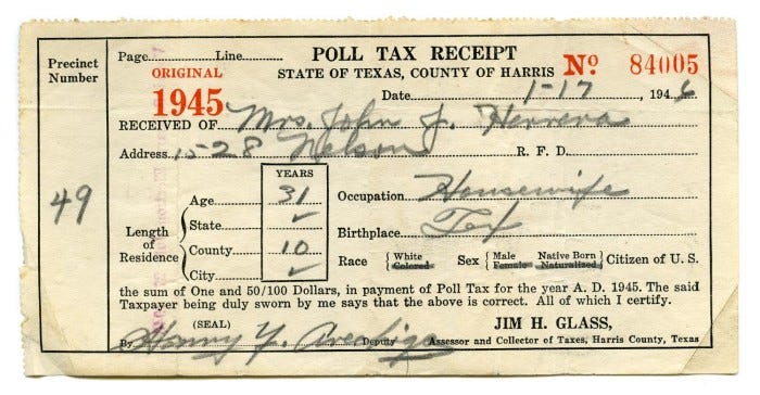 Smith v. Allwright opened the primary ballot, but Texas didn’t simply stop trying to fence people out. For the next two decades, county bosses and state leaders leaned even harder on the poll tax and local Jim Crow intimidation to keep Black and Mexican American turnout low until federal courts finally killed the poll tax in 1966. And still, Texas changed the rules again.