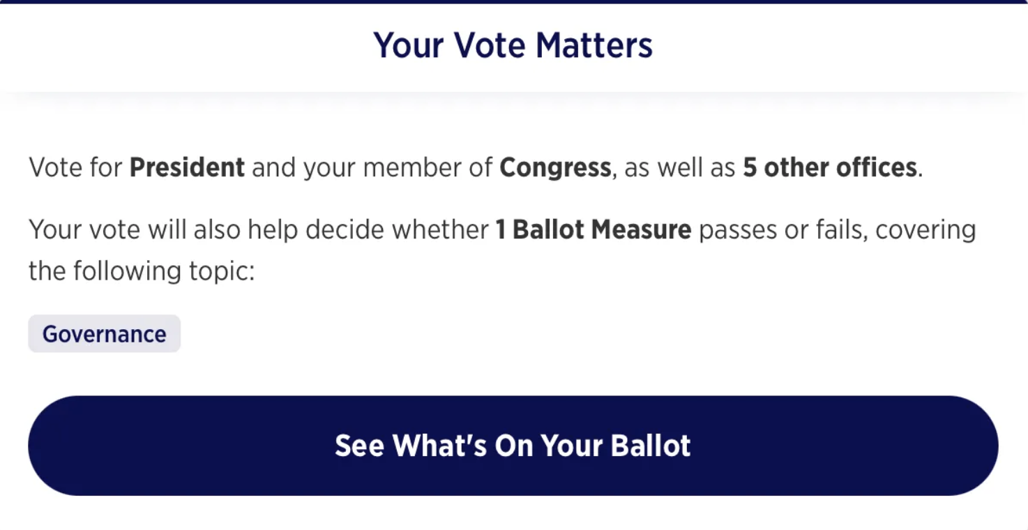 Use your address to find a voter guide for information on your state’s candidates and issues. You can also download a sample ballot.