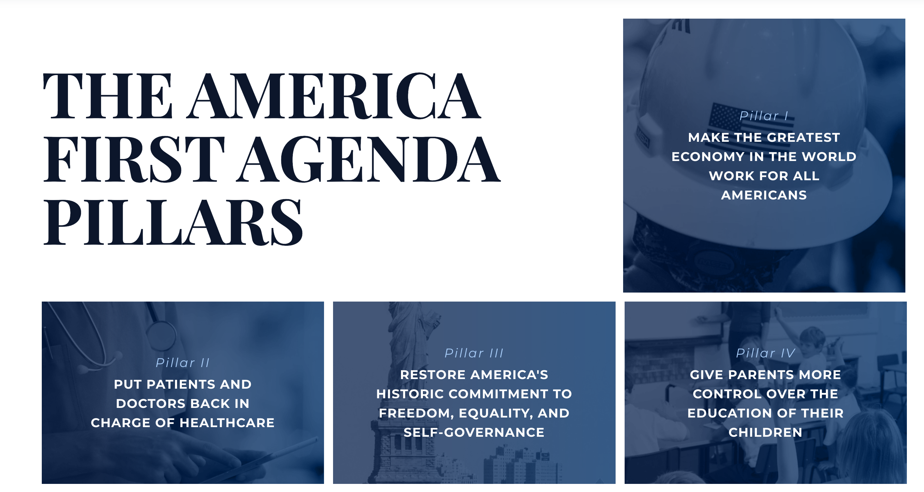 The AFPI is fairly explicit in its goals for the next administration. The group outlines ten pillars comprising its “America First Agenda.” The pillars are: