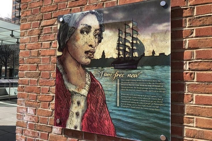 Ona Judge didn’t need a memorial panel to make her story true. But the panel mattered. It placed her story on sacred American ground, disrupted the founding mythology, gave schoolchildren visiting Independence Hall a different view of America’s origin story to carry with them. A few weeks ago it was gone, now it’s been returned, and some time in the future it may be gone again. As the pendulum swings back and forth, Black Americans will continue to claim space for our stories at the center of American history.