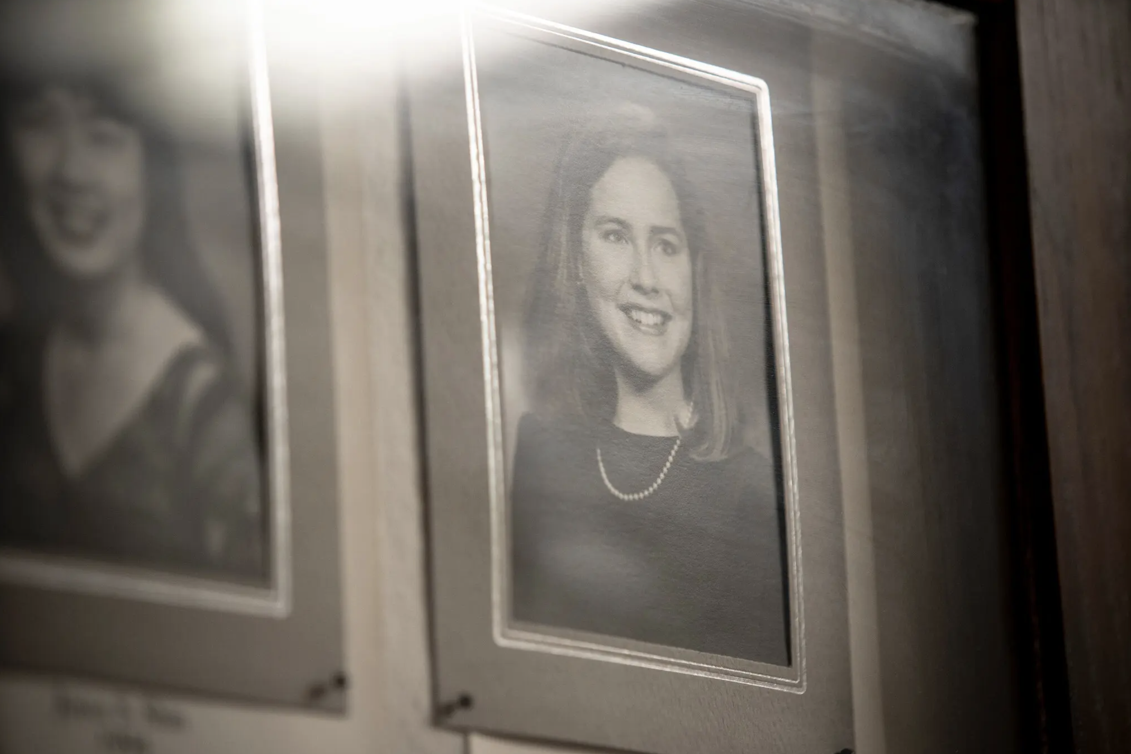 As a child, Amy attended an elementary school associated with the church, and then attended the same school as all the women in her family, St. Mary’s Dominican, an all-girls Catholic school. Like most other Supreme Court justices, she was an excellent student, and a photo in the yearbook from her senior year shows her studying.