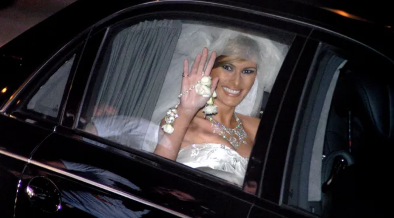 Details of the breakup are not clear, but they were back together within months, and were married on Jan. 22, 2005, in Palm Beach. Their wedding was Vogue magazine-worthy, with 350 guests, including Bill and Hillary Clinton, Rudy Giuliani, and Israeli Prime Minister Benjamin Netanyahu. Melania wore a custom Dior gown encrusted with 1500 pearls and rhinestones. It weighed nearly 60 pounds.